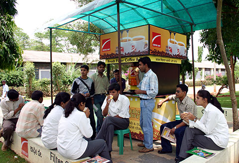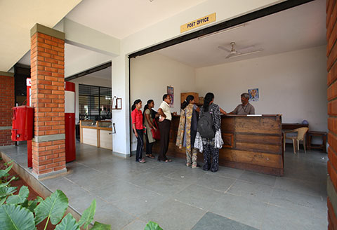 A Syndicate bank having floor area of 250smt is suited in the entrance of the college campus. It provides basic needs for the students, staff & campus inmates. The facility extend by the bank are ATM & locker facility beyond its regular facilities.